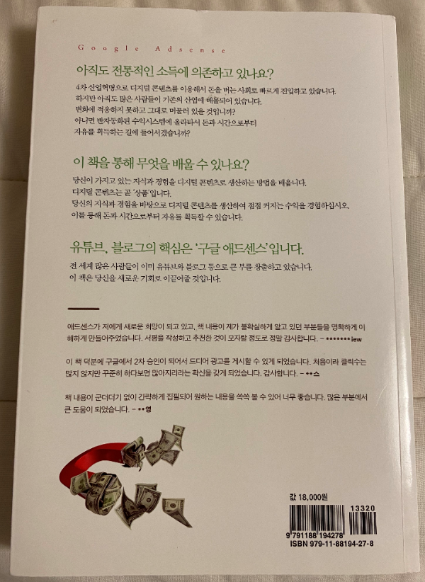 많은분들이 관심있어하는 주제인 '구글 애드센스'에 대한 내용이 담긴 책인 '구글 애드센스로 돈벌기' 서평을 해보겠습니다.