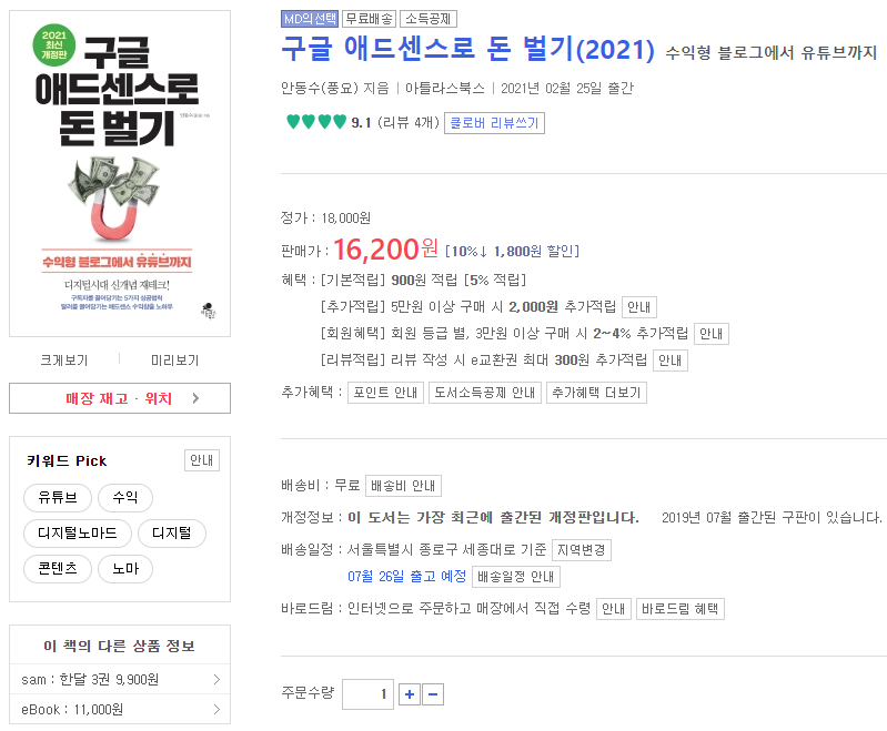 애드센스에 관심이 있고 입문자에게 권장해드리고 싶은 책입니다.