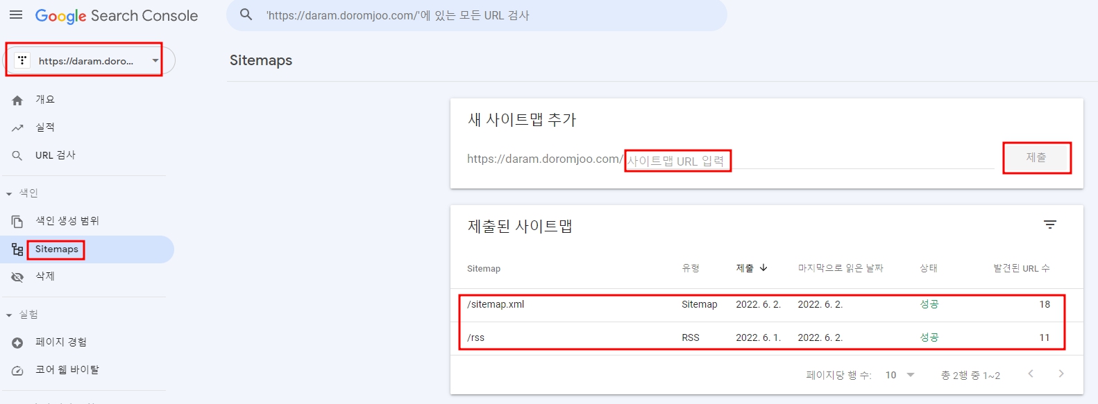 4. 구글 서치콘솔에서 'RSS' 와 'Sitemap' 등록하기