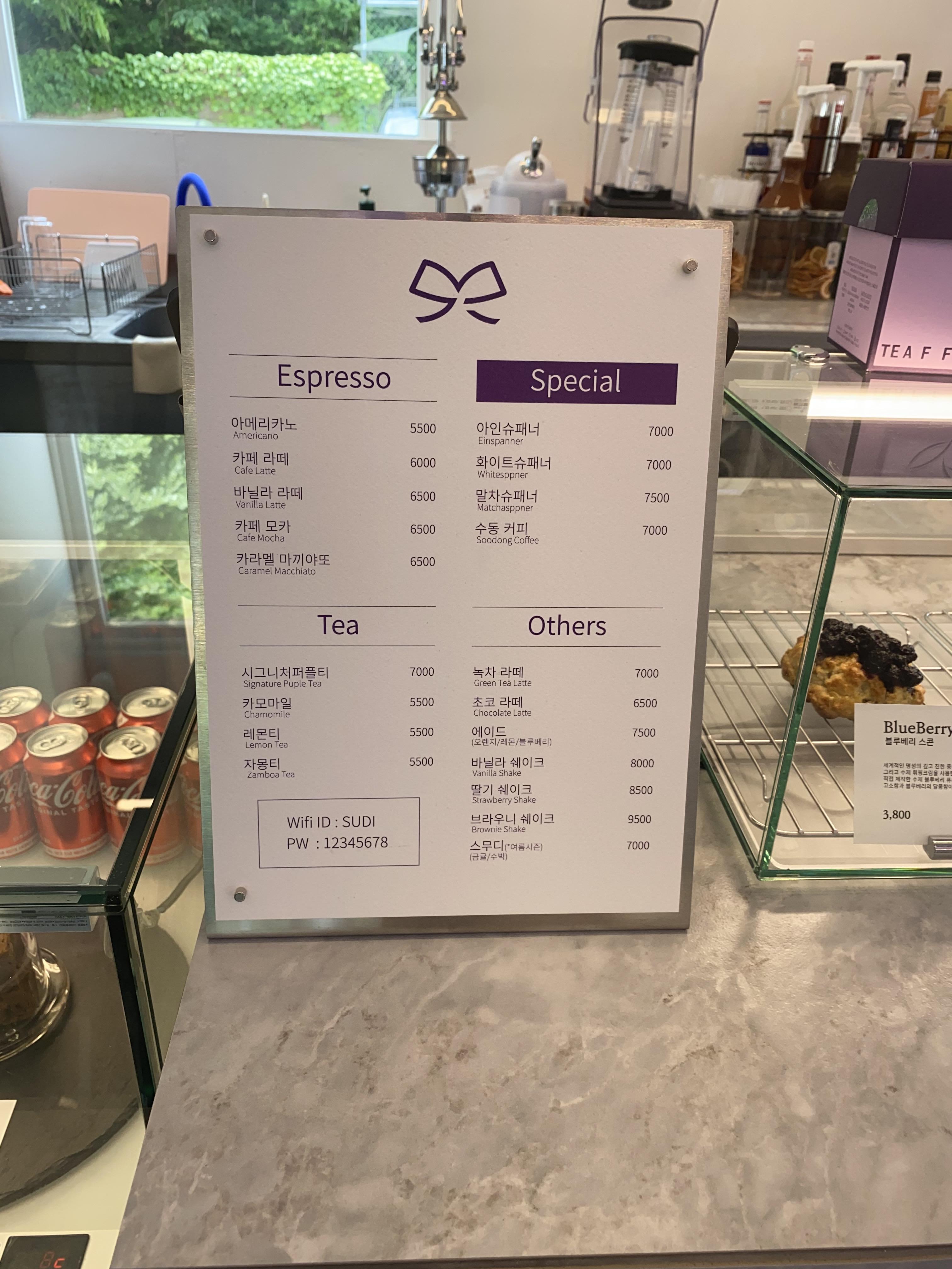 수디 카페 메뉴입니다.