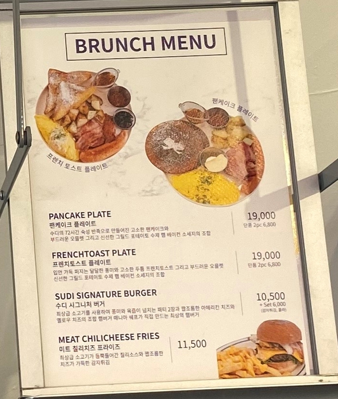 수디 브런치 메뉴입니다.