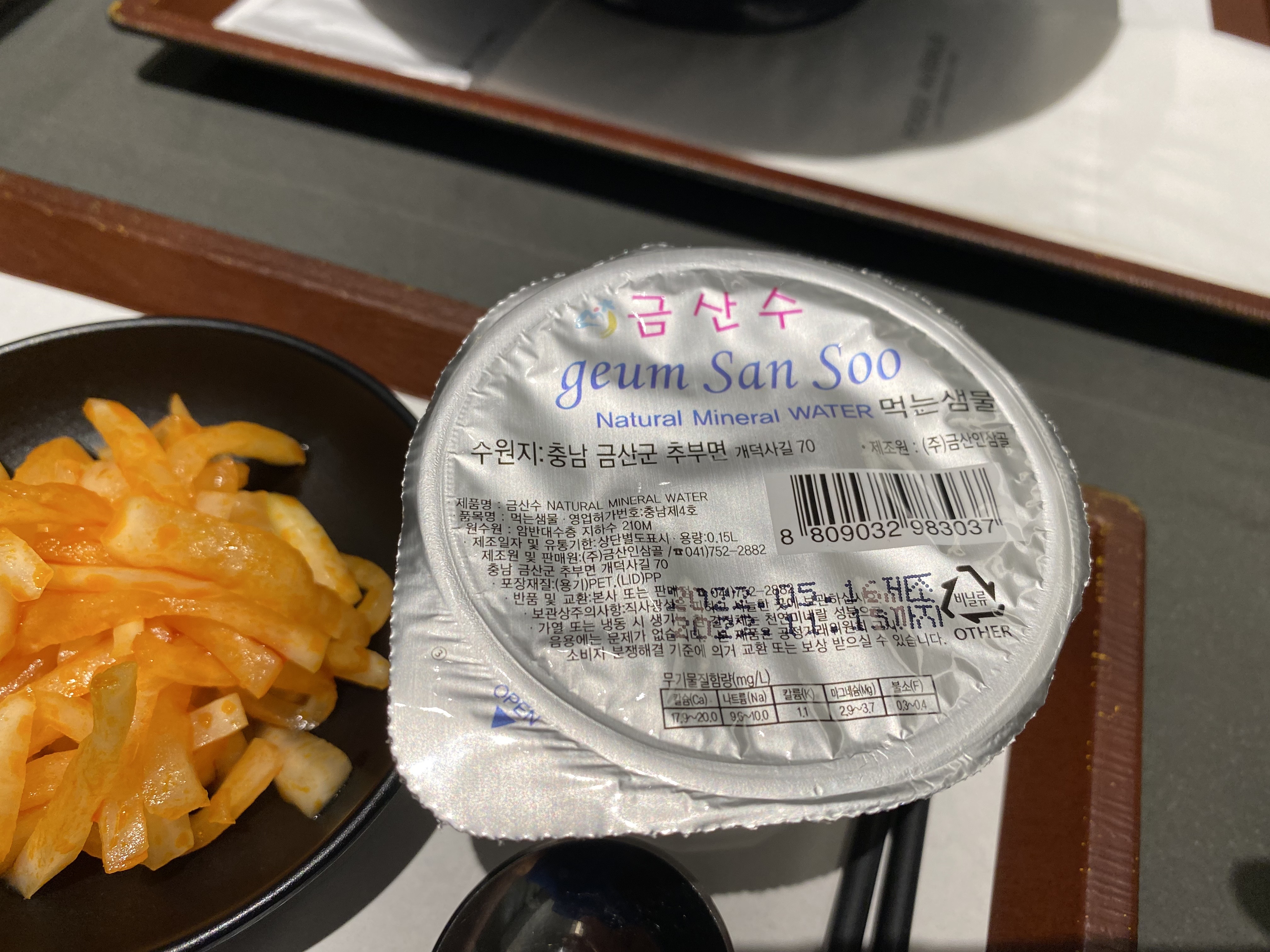 무생채는 간이 잘 되어 있으며, 느끼함을 잡아줬으며, 물은 냉장고에서 방금 꺼낸 것 처럼 시원했습니다.