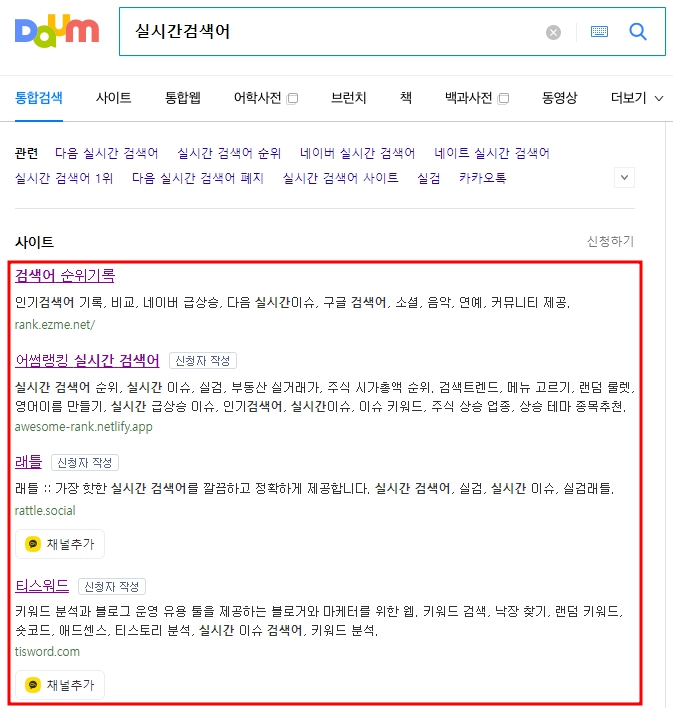 그 이외에도 여러곳에서 실시간 검색어 확인 서비스를 운영중입니다.
