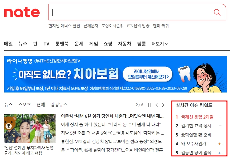 네이트에서도 실시간 검색어 서비스가 유지중입니다.