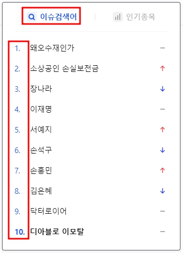 메인페이지에서 실시간 검색어 확인이 가능합니다.