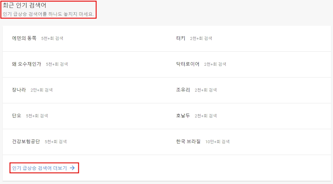 구글트렌트를 통해 지금 당장 인기 검색어를 확인하시고 싶다면 아래 링크를 참고해주세요.
