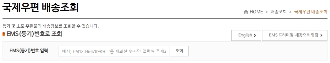 우체국에서 운영중인 국제소포 EMS도 공식 홈페이지에서 조회가 가능하며, 아래 링크를 참고바랍니다.