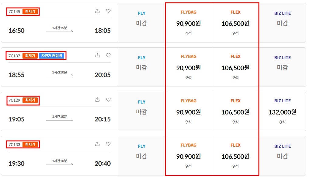항공사와 좌석, 출발시간대를 확인하시고 예매하시면 됩니다.