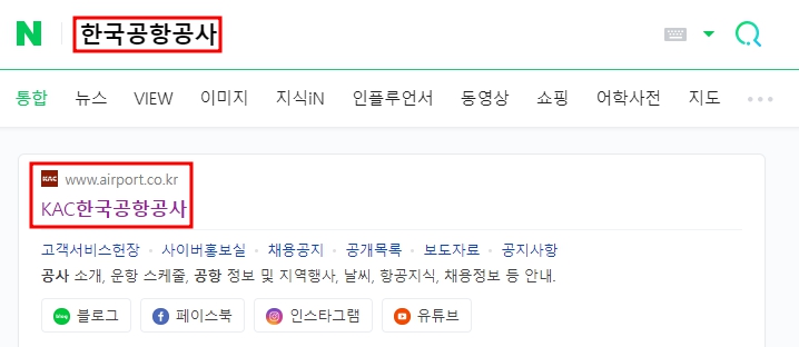 포털사이트에서 '한국공항공사'를 검색하여 공식홈페이지에 접속합니다.