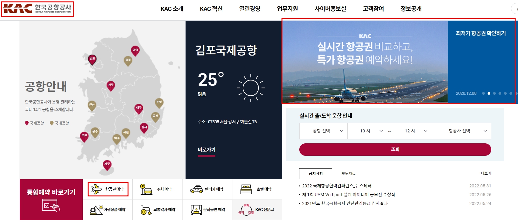 1. KAC한국공항공사를 통해 비행기표를 알아보기