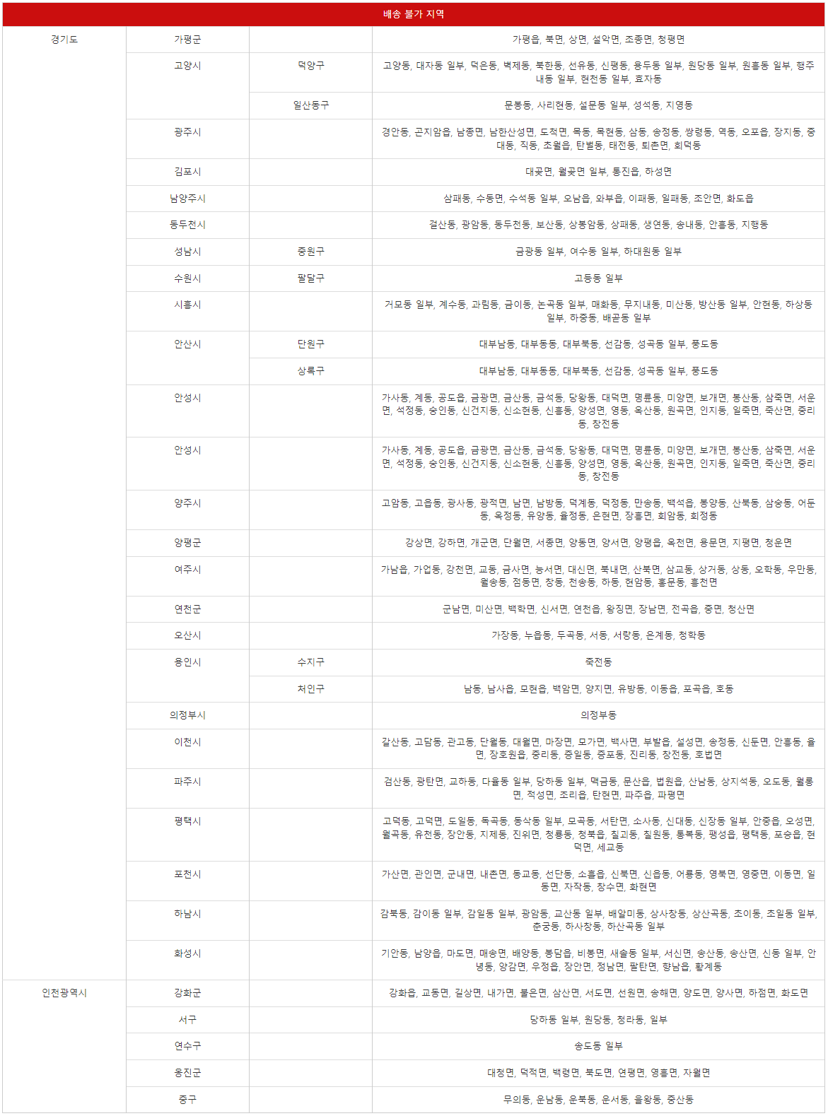 ※ 배송불가지역은 차후에 변경될 수 있습니다.