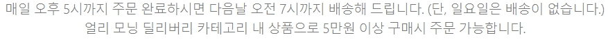 - 얼리 모닝 딜리버리 카테고리 내 상품으로 5만원 이상 구매시 주문 가능합니다.