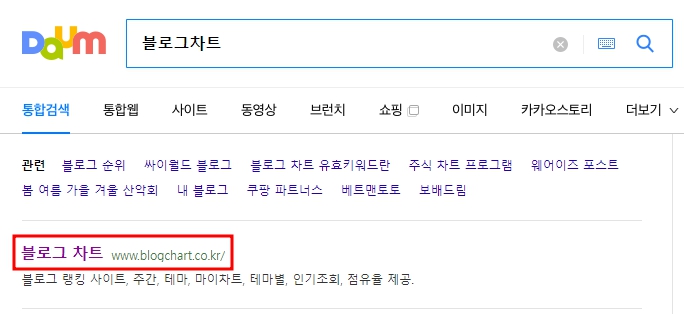 네이버나 다음, 구글과 같은 포털사이트에서 '블로그 차트'를 검색합니다.