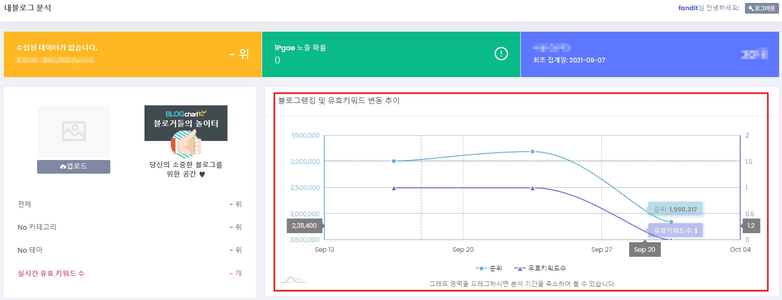 블로그 차트에 내 블로그가 등록되면 무료로 여러 지표를 확인 할 수 있습니다.