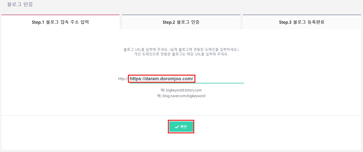 3. 나의 티스토리 블로그 등록 - 블로그 주소 입력