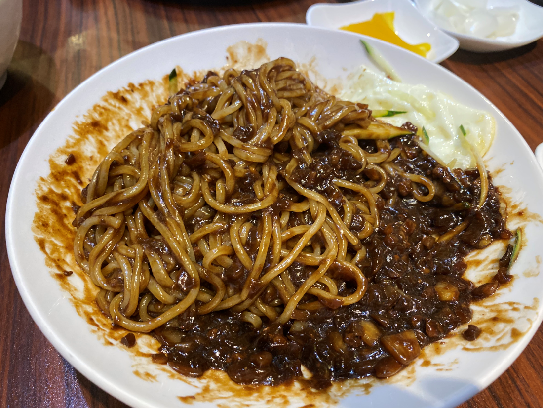 얇게 짤려진 오이는 자장면 먹을 때 식감을 더욱 자극하는 것 같습니다.