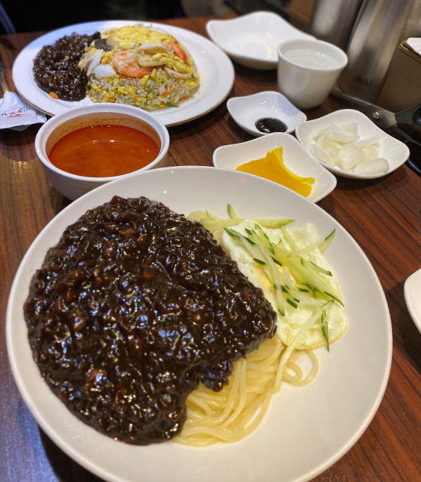 우리가 주문한 유니자장면과 삼선볶음밥이 나왔습니다.
