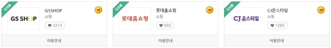 아래 정리된 표를 보시고 쇼핑 브랜드에서 사용 가능한 브랜드를 확인해보세요.
