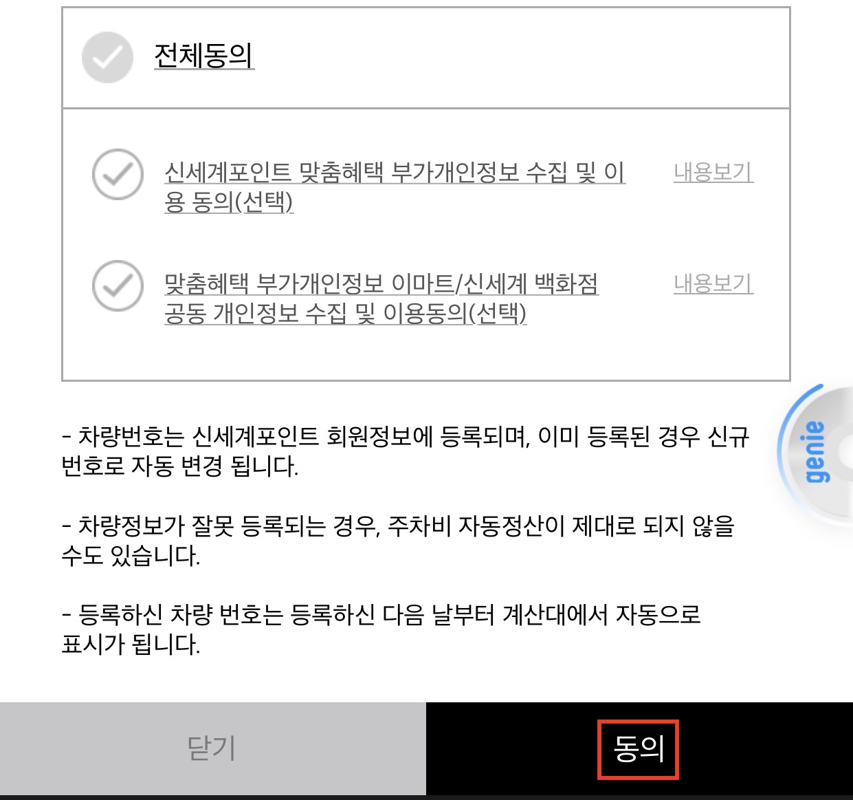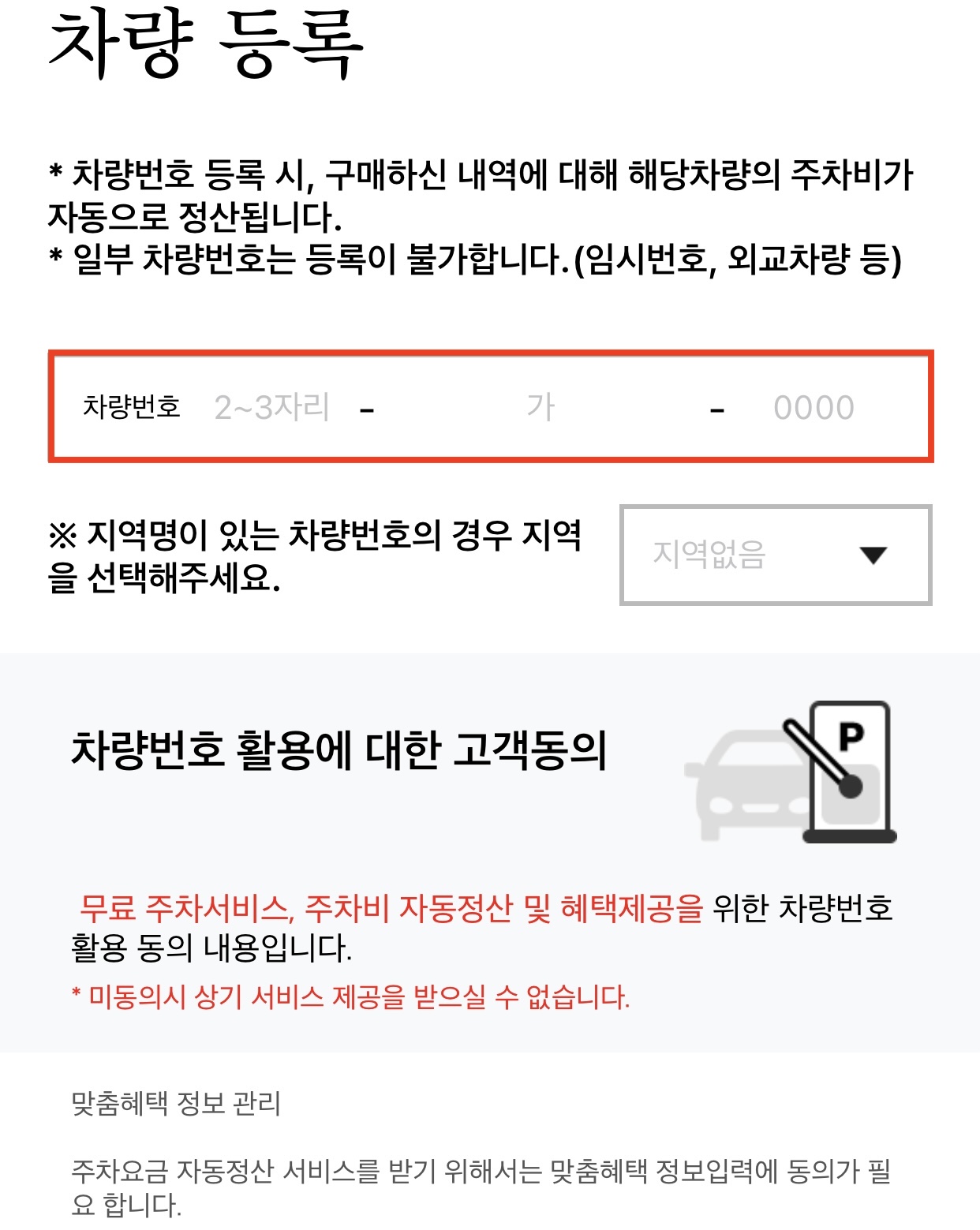 3. 신세계백화점 앱에서 본인 차량 정보 등록