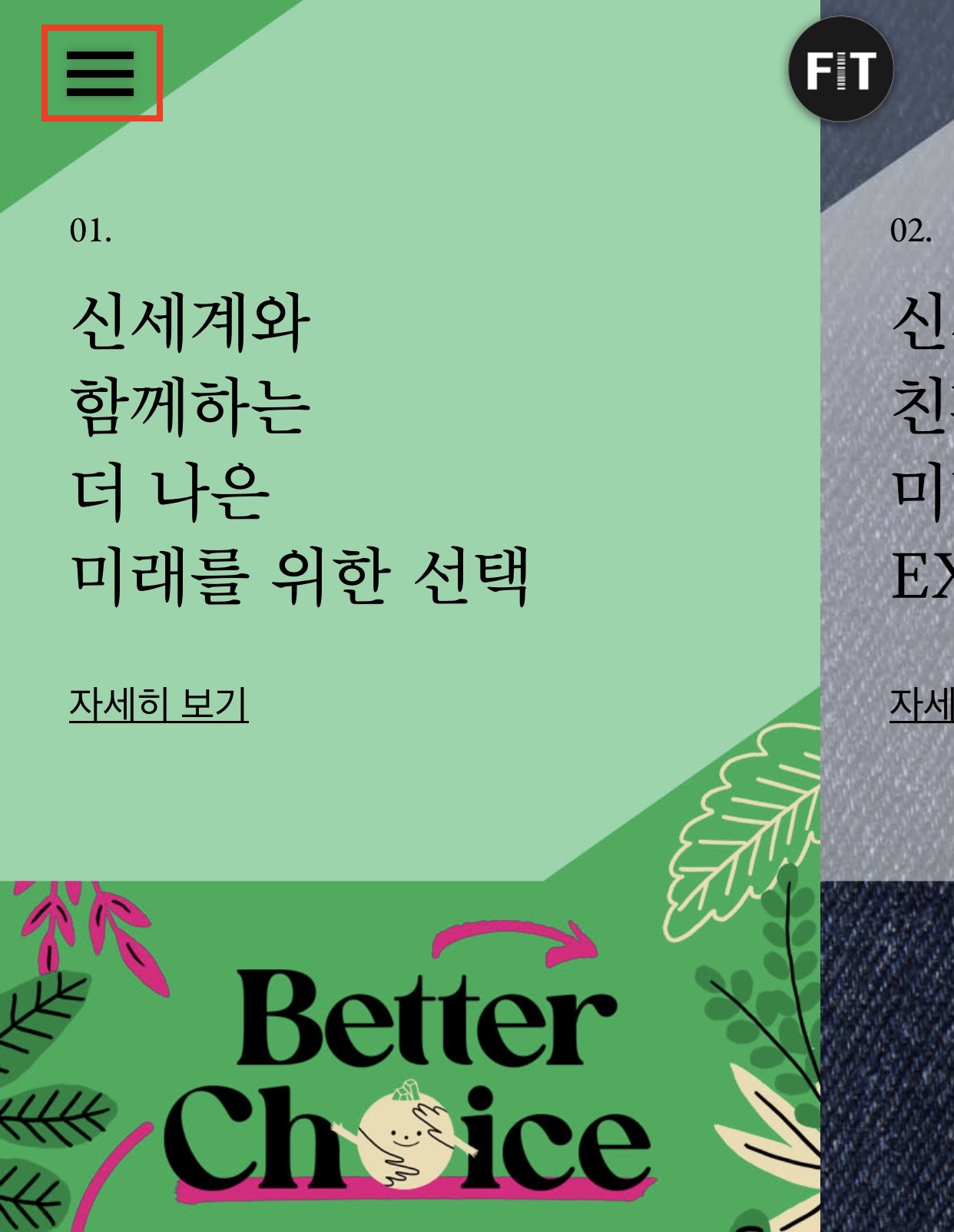 신세계백화점 메인 화면에서 좌측 상단에 '네비 바'를 클릭합니다.