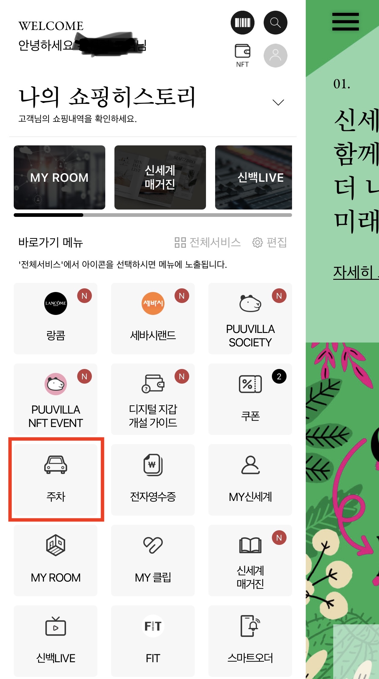 신세계백화점 무료 주차를 원하신다면 신세계 백화점 앱이 필요합니다.