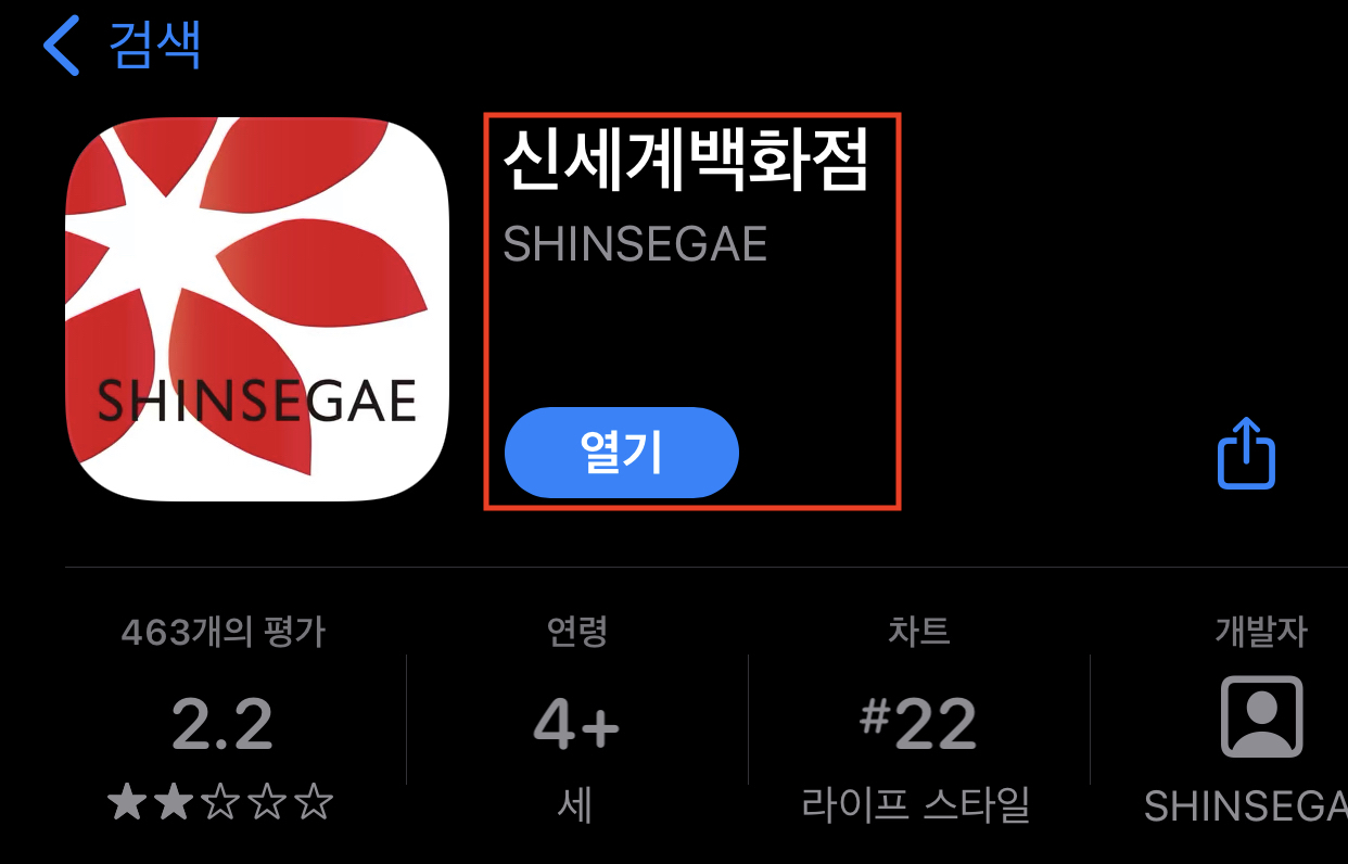 정상적으로 신세계 백화점 앱 설치가 완료되었으면 앱을 실행시켜줍니다.